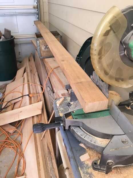 Así que es hora de empezar a cortar. Empecé con un áspero cortar 2 X 4 y cortar en la Sierra de inglete la longitud de mi corto rayas, rayas largo y la longitud de mi Unión (zona donde están las estrellas).