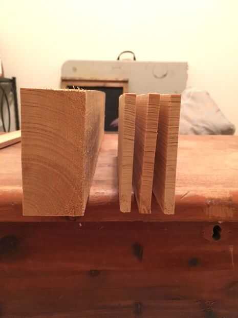 Una vez que tengas todos tus listones es tiempo para ésos en listones para tus franjas. Determinar el tamaño de la raya con sus cálculos y ajustar su guía y empezar a cortar.