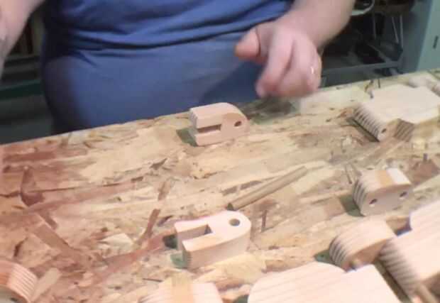 He utilizado 3/8" roble tacos cortadas en 4" largo para sujetar los picots de correa a los vínculos de correa. Cortar estas usando mi cruz corte trineo con mi sierra de mesa. Se necesita 12 piezas total.