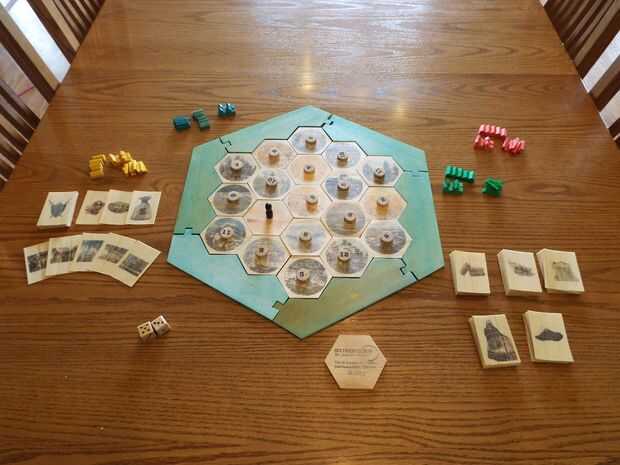 Colonos de Catan es un juego de mesa que era bastante popular cuando estaba en la Universidad. Mientras que esta versión es específica a los colonos, podrían adaptarse a prácticamente cualquier juego de mesa. Voy a través del proceso para crear tarjetas, meeples, azulejos, 3 componentes dimensionales, dado echado a un lado seis simple y transferencia muriendo y de imagen sobre los componentes. La mayoría de los distintos componentes del juego está cubierta en la creación de este juego, pero es posible que otros tipos de componentes también podrían crearse con un poco de creatividad. Agregar imágenes y componentes de teñido está cubierto en el último paso.