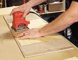 Una superficie de arena llevará a la transferencia de la tinta mejor que la superficie rugosa que vienen directamente de la prensa. Una vez que tenga suficientes hojas del material para las tarjetas de utilizan una lijadora de palma para suavizar las hojas. No utilice un grano de lija que es demasiado agresivo. Usé grano 220, 180 debe ser aceptable, pero cualquier cosa menos probablemente sería demasiado agresivo. Tenga en cuenta que los bordes son frágiles y probable chip aparte mientras lija.