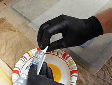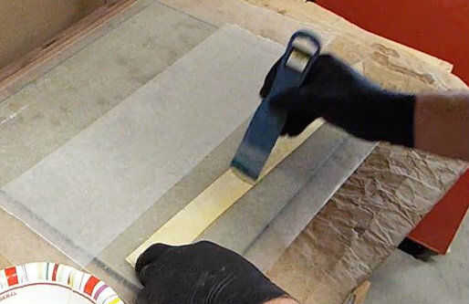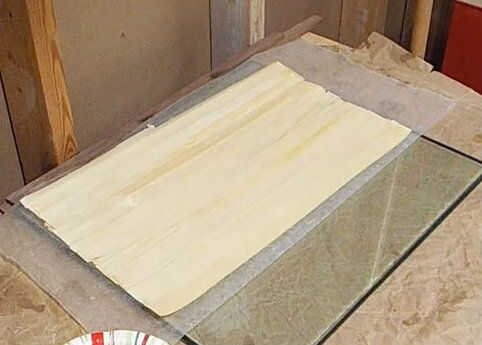 Armados con cientos de virutas de piso 2 x 4 es el momento de crear las hojas de "papel" que se utilizará para las tarjetas del juego (de los colonos de Catan este es el recurso tarjetas y cartas de acción). Usted necesitará un par superficies planas pesadas que funcionan como una prensa, usar dos hojas de 5/8" vidrio que miden aproximadamente 16" cuadrado. Cubrieron de dos hojas de madera contrachapada o melamina Tablero de partículas con un peso también debería funcionar con eficacia.
