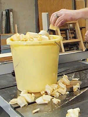 Configuración de un plano de la mano para tomar de. 005" virutas. Coloque la sección de 2 x 4 sobre la superficie de trabajo con el lado estrecho hacia arriba con un bloque de tope. Cuidadosamente plano consistente virutas de 2 x 4 en la final. Las primera pocas virutas serán más estrechas para tener en cuenta la ronda sobre típicamente puesto en 2x4s centro del hogar que pueden ser desechados. Una vez que los chips son todo el ancho de la Junta de reunirlas para arriba en un cubo o recipiente similar. Las virutas tendrá sobre una de 1" a 2" enrollamiento en forma de bucle.
