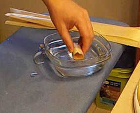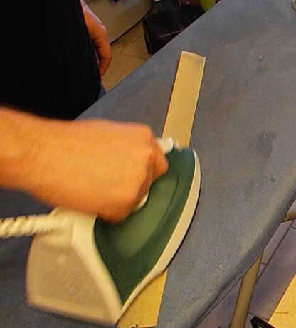 Las virutas de sirven de nada todos acurrucado firmemente, por lo que necesitan para estar preparados. Seco como son las fibras de madera se romperán si intenta desenrollar el afeitado. Sumerja el rizado afeitar en agua tibia durante 5-10 segundos ablandar las fibras de madera. Esto le permitirá a desenrollar el afeitado sin romper las fibras. Luego, usa una plancha que no piensa en el uso de ropa otra vez, hierro las virutas hasta que estén planas y secas. Esto debe tomar menos de medio minuto por afeitado.