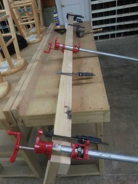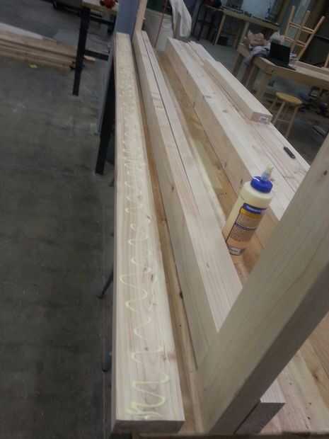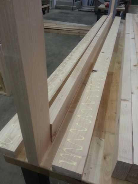 Como una sola pieza pegamento en una capa de 2 x 4 a la vez hasta llegar a la conclusión.
