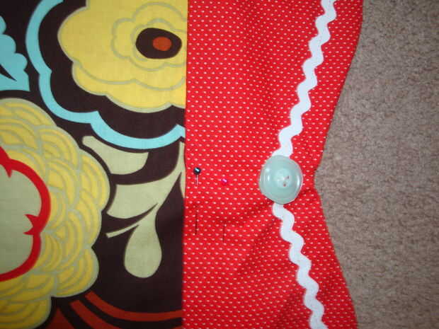 Su delantal ahora está tomando forma. Ahora lo que queda por hacer es conectar al combo de la correa de cintura con la pieza de fondo de fondo.
