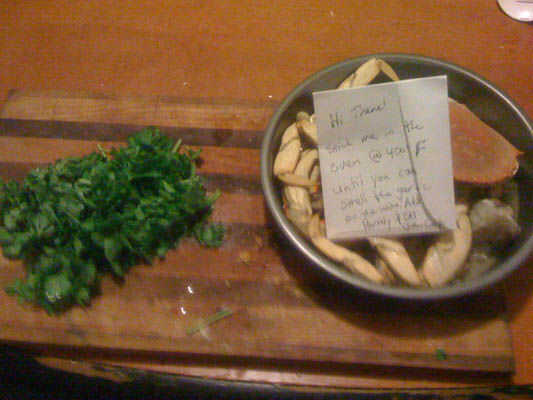 Disfruto de cocinar desde cero y tienen la costumbre de combinar izquierda sobre ingredientes de recetas anteriores; una receta que estoy haciendo. Esta forma de cocción puede causar sabores interesantes creando " la receta con el ingrediente secreto