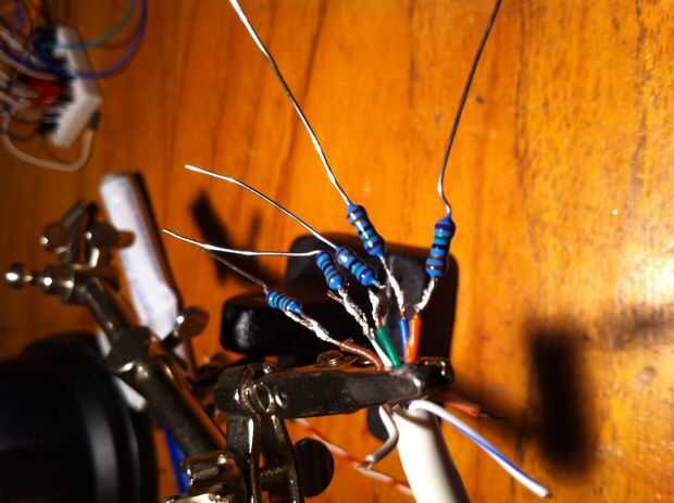 Cuando todo esto es conectar las resistencias en los cables y conectar las resistencias en los pines de Arduino, 8, 9, 10, 11 y 12.