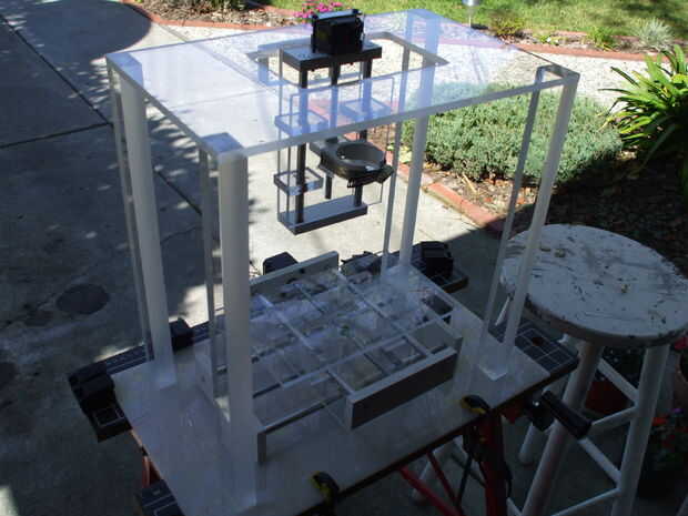 Ahora es el momento para pegar el 1 1/2 "x 16" x 1 "entradas a la tapa de acrílico de eje de z y entonces después listo con eso, después pegue a la base.