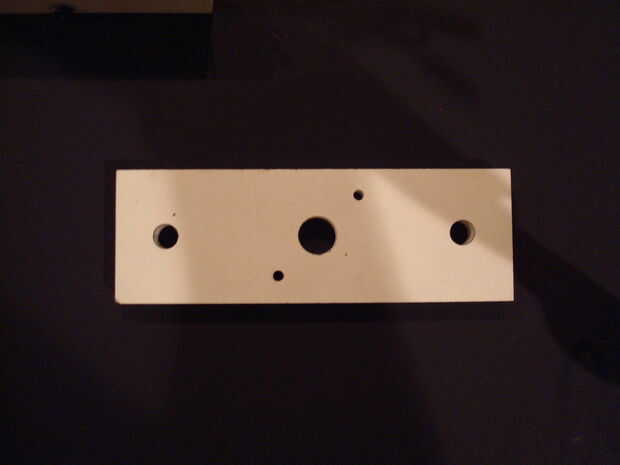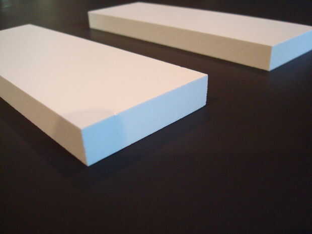 2 de las piezas de pvc expandido que son del mismo tamaño de la pila y en su totalidad en el centro del taladro