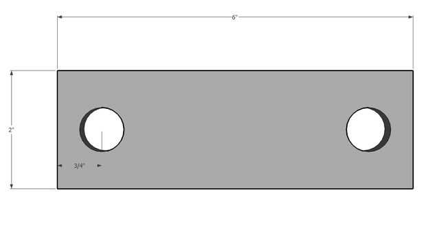 y dos agujeros cada una tres cuartos de pulgada desde el borde de la línea central.