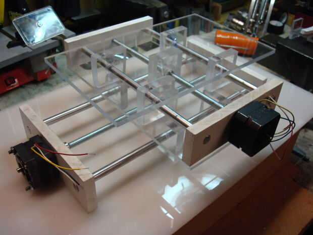 Una vez que haya encontrado un pegamento base, su eje x a él y entonces su eje a la tapa de acrílico del eje x,