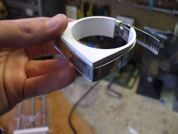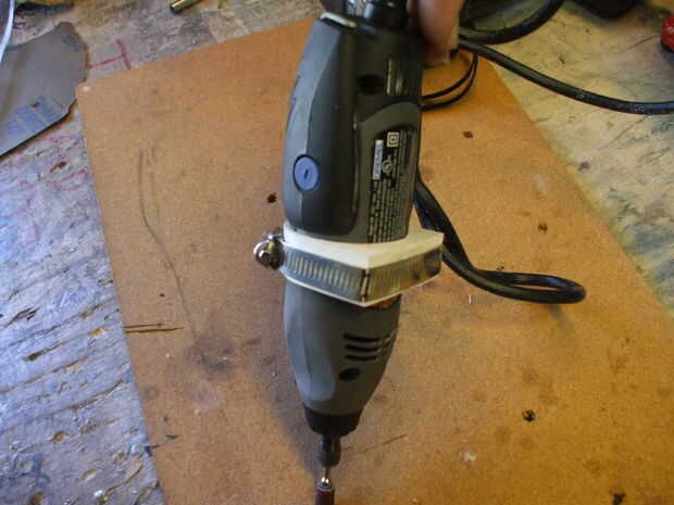 Tienes que cortar un poco del labio para adjuntar a la hoja de acrílico porque el montaje de la tubería no va a ser plano, una vez que usted Deslice la herramienta rotatoria en porque se expande.