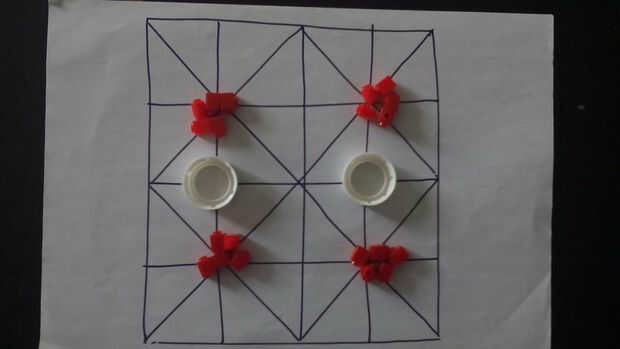 Nueve Morris de los hombres es un juego de estrategia del 2 jugador de forma en el día. Este juego apareció en los días del imperio romano. (Creo que 27 A.C.)El juego básicoCada jugador comienza con 9 piedras (hombres) cada conjunto un color diferent