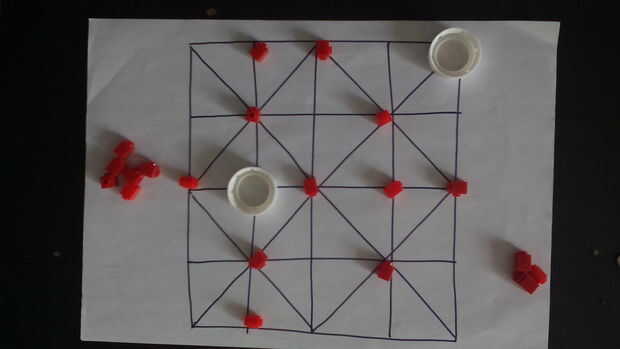 Si los cazadores rodean los tigres y los Tigres no pueden moverse, cazadores de ganan. Los Tigres ganan cuando comen suficiente cazadores que los cazadores no pueden rodear los Tigres ya