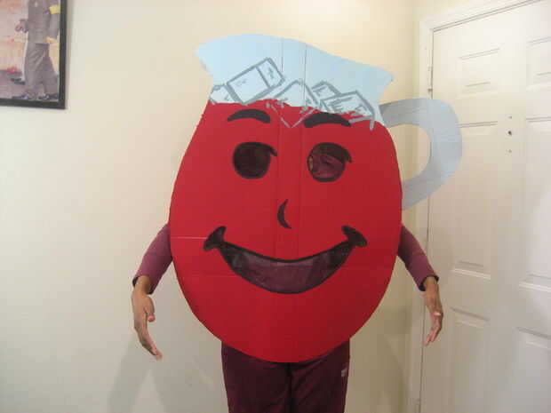 Con $20 por unos materiales, unas cajas de cartón de un cartón contenedor de basura, pintura acrílica y algunas herramientas básicas del arte también puede ser hombre de Kool-Aid para Halloween!