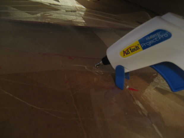 Acople negro Tul a boca y los ojos al interior del traje con pistola de pegamento caliente