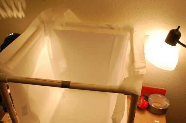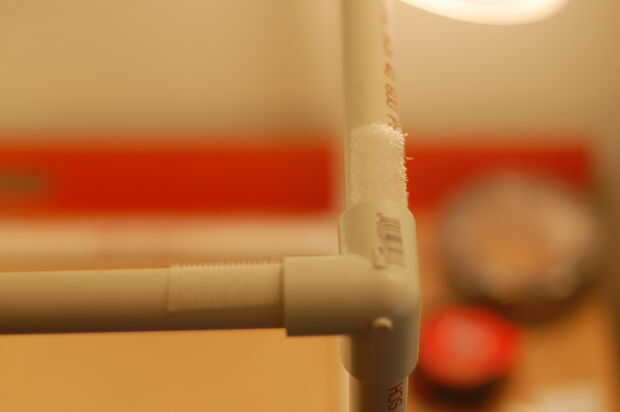 Una vez que hayas cortado la cortina, usted necesitará instalar más velcro, para fijar a la estructura. Una nota, el adhesivo regular en la parte posterior no se fije muy bien a la cortina, usé una grapadora de escritorio para garantizar los parches. En lugar de ir las medidas entre los parches de velcro, que realmente pueden variar dependiendo de lo apretado o flojo desea que su cortina, es más fácil ir de un lado a otro. Apenas como con el tablero de la espuma, colocar dos parches de velcro en las tuberías de izquierda y derecha hasta la parte superior.