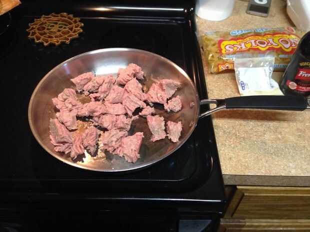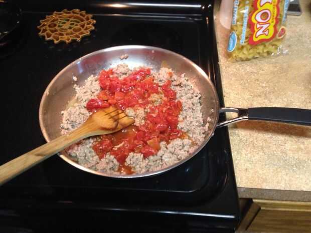 Añadir la carne molida. Cocinar hasta que la rosa se ha ido. Unos 5 minutos.