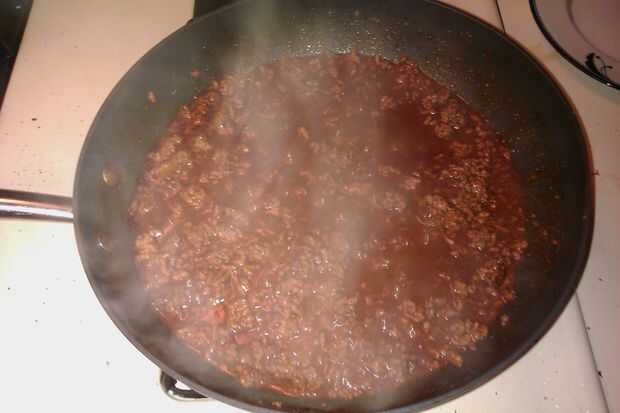 Después el líquido y el agente de espesamiento en la carne, revolver para arriba y llevar a un hervor ligero. Permitir que la carne a fuego lento hacia abajo hasta que quede el espesor que te gusta, personalmente, me gusta un poco más líquido que una pasta.