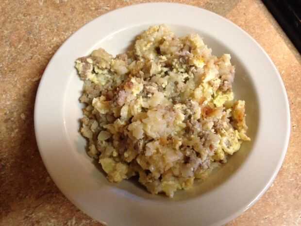 Es un plato de huevo que la abuela de mi esposo hecha para él cuando él era un niño. Nos hemos estado casados por 19 años y he "hecho lo correcto" en los últimos 10 años. Esto es no quiere decir que no hace lo correcto. No tiene mi esposo que le critique. :)