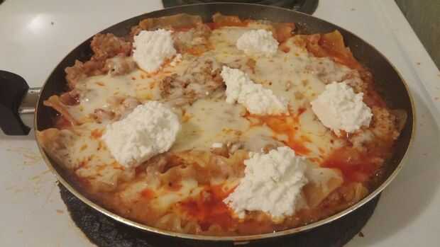 Finalmente cubra con queso ricotta y cierre la tapa de un cocinero durante 2 minutos.