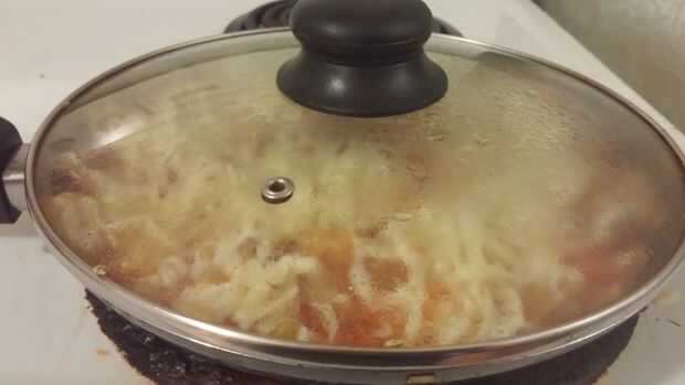 Espolvorear el queso mozerella en la parte superior y cerrar la sartén y cocine por 5 minutos más a fuego medio bajo.