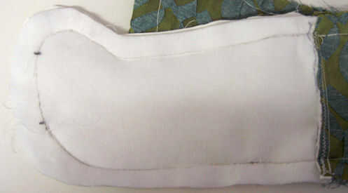 Cose a lo largo de la línea, pero deje una abertura de buen tamaño en la parte inferior del revestimiento a revés.