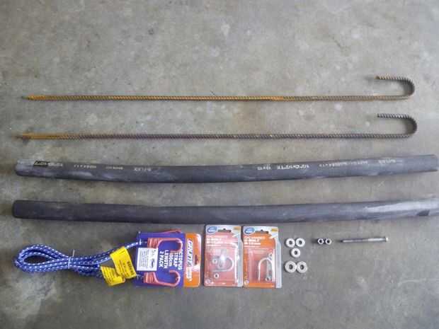 correas de goma de 2 x 1m con ganchos (más tarde me entero de que m 1 es demasiado largo! Medio metro es más que suficiente)