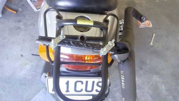 Al final rociaron piezas soldadas con pintura negra, tirada la rejilla en el scooter rack y apriete los pernos de U. Asegurado la junta con elástico con 2 anzuelos y que era él.