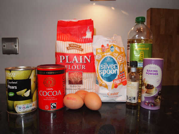 lata de 410g de mitades de pera, jugo (el ingrediente secreto que mantiene este cupcake húmedo pero baja en calorías).