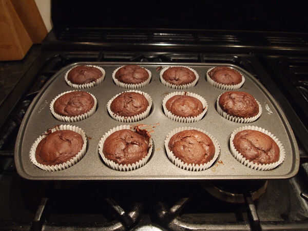 Utilizando una cucharada a la vez, transferir la mezcla de la ensaladera a los casos de la Magdalena. Utilizando una cucharada que puede asegurarse de que los cupcakes aproximadamente va ser el mismo tamaño, pero si usted quiere ser más preciso puede pesar la mezcla y coloque cantidades iguales en los casos. Finalmente, pusieron sus magdalenas en el horno (debe ser a Gas marca 3) y espere por 20 minutos, o hasta sólo unas migajas (pero no mezcla húmeda) Unidas a un palillo cuando pinchó. Dejan enfriar en la bandeja del Magdalena durante 5 minutos, luego poner sobre una rejilla hasta que enfríe completamente.