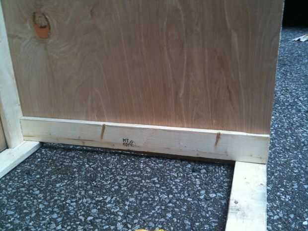 Entonces, 4 vigas de cortadas a la profundidad del monolito (24") y había atado a uno - apunta - en cada esquina del bastidor cuadrado. Ver las fotos de lo que parecen las uniones. (1 1/2" tornillos en cada esquina)