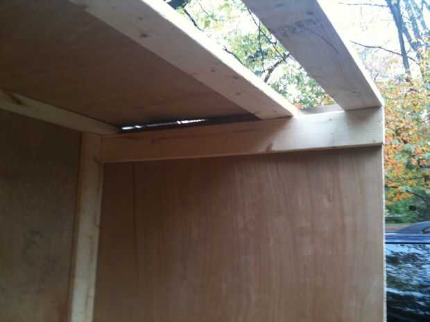 Después de eso, cortar tres más ancho. Os adjunto uno en la parte posterior de las dos piezas de profundidad superior y otra en la parte posterior de las dos piezas de profundidad de fondo. El tercer rayo también fue unido en las piezas de superior profundidad, que terminó 18" detrás de la parte frontal del monolito (ver fotos). Lo hice porque no tengo madera de suficiente base para una hoja de 24" de profundidad en la parte superior). Pero funcionó para esto mejor - la brecha dio un el sonido de un lugar para dejar el acabado monolito y nunca consiguió tapado dentro de la caja durante Halloween.