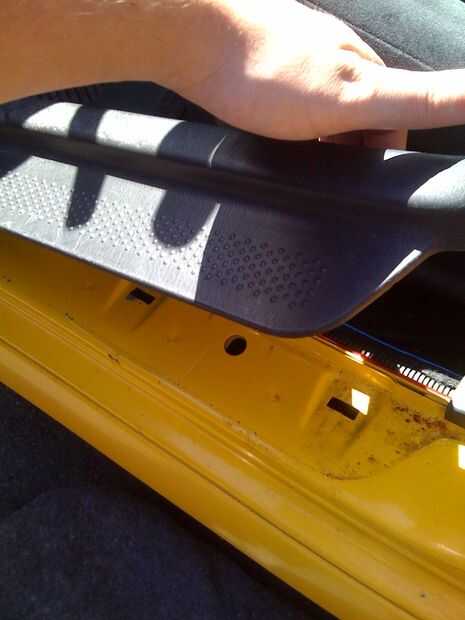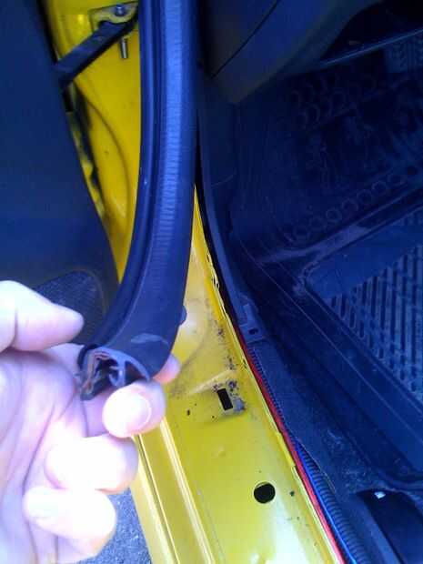 La pieza número 2. A continuación necesitamos pelar algunos del sello de la puerta cerca del frente del coche. No tenemos que quitar todo, simplemente tire de él hasta que usted puede lanzar por encima de la puerta abierta para mantenerlo fuera del camino.