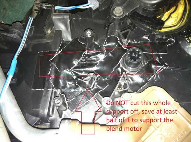 Cuando llegué a casa puse algunos grasa de litio blanca en los extremos de la puerta de la mezcla y se deslizó detrás a través de la ranura que había hecho en la caja del calentador. Con alguna cinta gorila con un cinta de las partes que había recortar fuera de la caja del calentador sobre el agujero. Cuando la puerta de la mezcla se coloca nuevamente, cae hacia el ajuste más frío por defecto. Así que encendí la camioneta y que el calor se estableció en el ajuste más frío y luego instalado el motor de mezcla de nuevo. He probado la alineación del motor cambiando el calor tan caliente como la que ir y volver al frío y pude escuchar la puerta moviéndose como diseñado y donde la intención. Ahora tengo calor en mi camioneta una vez más!!!!!! Y sólo cuesta 2 dólares para arreglar!