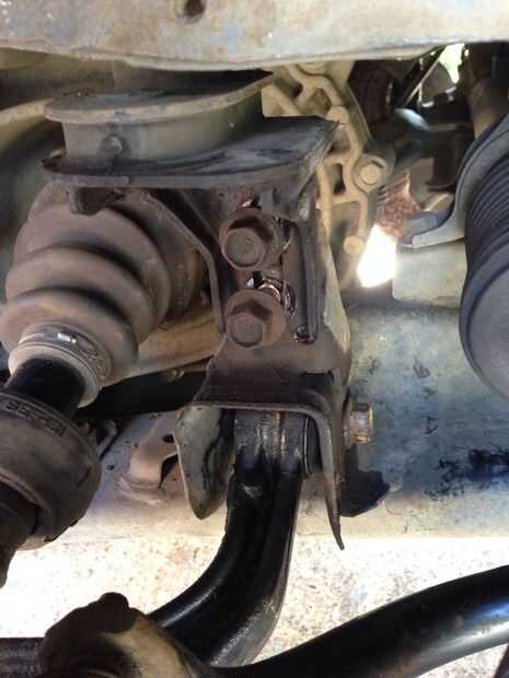 Hay 2 tornillos a cada lado del coche que sostenga el marco secundario a la carrocería mediante una anti vibración montaje. Completo quité dos tornillos en ambos lados para permitir que el subchasis para bajarla. Estos fueron muy apretados y porque estaba preocupada por despojarlos, pero después de un montón de WD40 y el sudor, salieran.