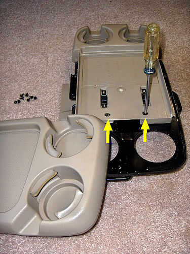 Quite los 2 tornillos indicados (de cabeza troncocónica Philips).