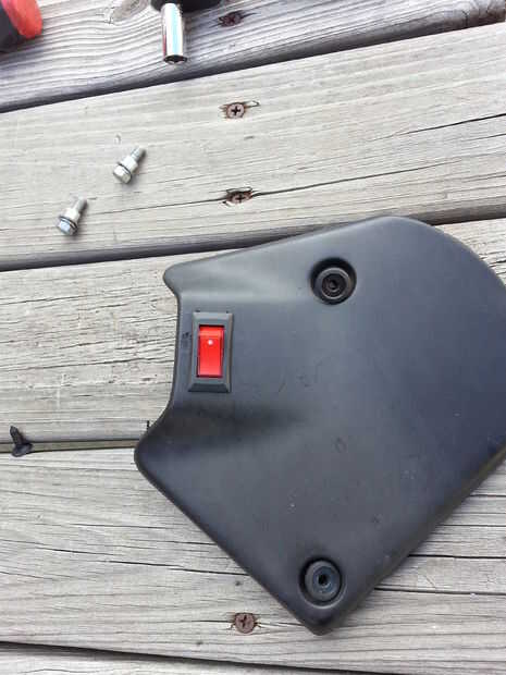 Ahora para el cableado, que no voy a describir cómo hacerlo. Hay manera de muchos otros lugares para encontrar la forma en que desea hacerlo. Sin embargo será mostrarle cómo coloqué mi interruptor. Justo en frente del tanque es la tapa de plástico del cuello. En el panel lateral izquierdo he quitado el panel y utilizar una dremel para cortar un agujero para montar el interruptor. De esa manera va a ser a su alcance.