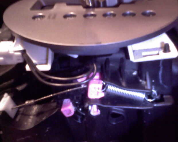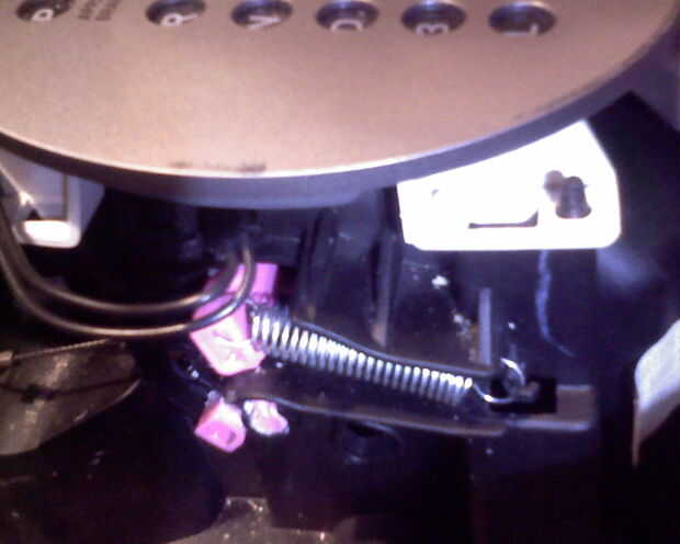 Tuve que conseguir un muelle de repuesto, así que fui a la tienda y compró el más pequeño resorte de retorno del acelerador que pude encontrar. Era un poco demasiado larga, así que corte hasta una pulgada de longitud total. Luego perforar un agujero en la parte de plástico rosa y había enganchado el resorte entre él y el gancho en la palanca de sujeción de primavera. Después de probar que trabajó según sea necesario, pongo la consola nuevamente juntos. Total costo de reparación, $3,00 y una hora de trabajo para una solución que es mejor que nuevo. El precio para un cambio de sustitución de vivienda en el concesionario, $142,00 más instalación, probablemente al menos $300,00 todos juntos.