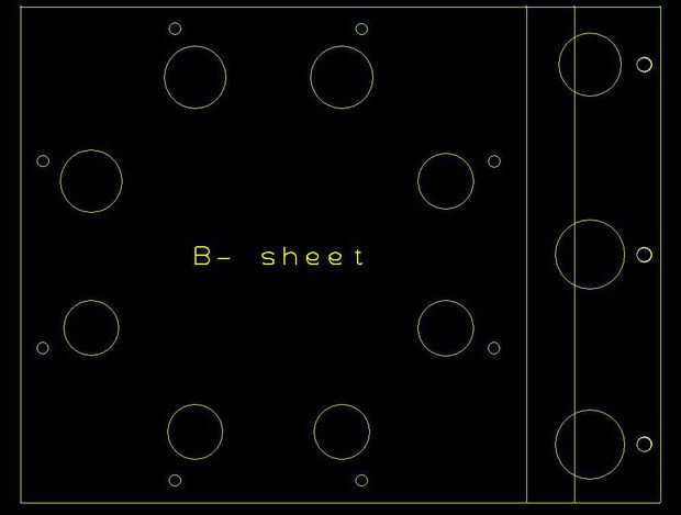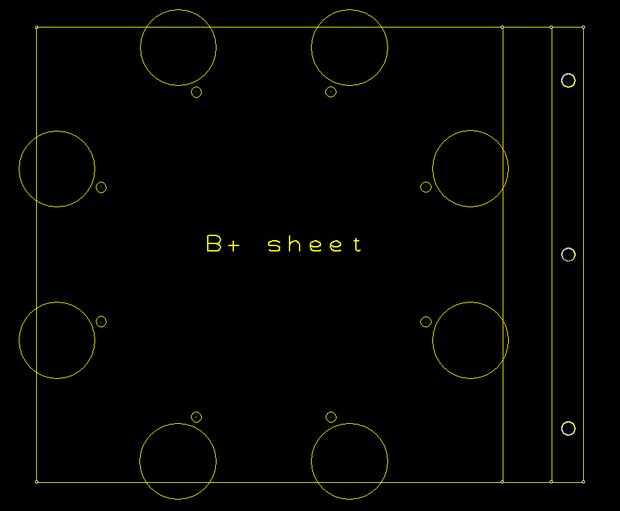 Para la hoja de B +, los agujeros están muy juntas, por lo que es un poco torpe agregar las notas en el cuadro para indicar las coordenadas. Voy solo enumero aquí: