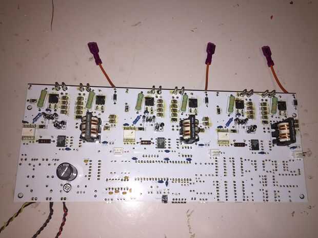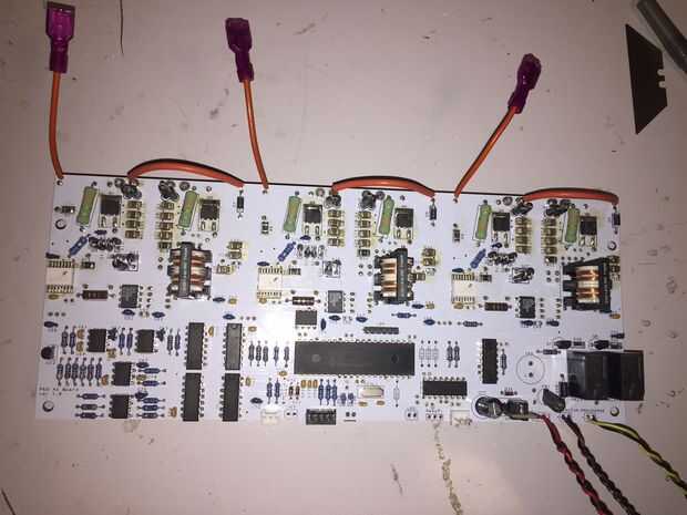 Depurar el cuadro de mandos antes de proceder! Si tienes una fuente Banco, intentar dándole 23.5v-24.0v en la fuente de 24v (véase el cuadro arriba). Programar el microcontrolador con esta depuración de código, y mida la tensión entre cada par de la hembra 0,11" rápida desconexión. Ver la foto de arriba para las notas en este: