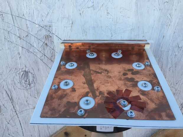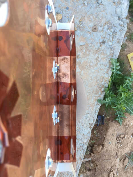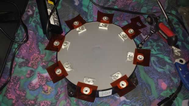 Poner alguna cinta del kapton en las fichas B del condensador como se muestra en la foto de arriba. Asegúrese de que usted corta un círculo de 5/8 de pulgada de cada pieza de la cinta, así que todavía te buen contacto entre las pestañas y la hoja de B. Es necesario agregar esa cinta para evitar que la hoja del B + de cortocircuito a las B-fichas. Coloque "sandwich" en el condensador. Añadir los 3 trozos de cinta del kapton como se muestra en la foto 4. Que impide que los IGBT B + pernos está demasiado cerca a la hoja de B.