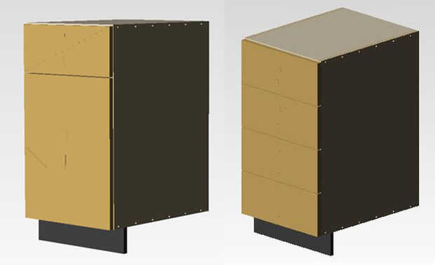 Mi esposo, un ingeniero mecánico y yo (un técnico en ingeniería) hemos pasado la mayor parte de los últimos 2 años trabajando en una plantilla de modelo de gabinete que nos permitirá hacer casi cualquier armario cambiar unos pocos parámetros y haciendo mínimos cambios dimensionales. Hay muchos programas de gabinete en el mercado y vio a la mayoría de ellos en profundidad. Siempre hubo limitaciones o eran demasiado caros. Siempre quería algo que los programadores no habían considerado e incluido. Así que hicimos nuestro propio modelo usando Alibre y aprovechando las capacidades de modelado paramétrico. Hay que reconocer que está muy por delante de la simple caja en 101 de modelado paramétrico.