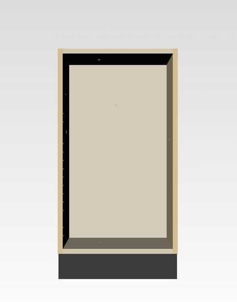 a continuación está el cajón sobre puerta gabinete (con cara y eliminado para que pueda ver el interior del cajón). Originalmente era 18" de ancho. Después de volver a trabajar será 36" de ancho. Los lados son iguales, pero los superiores, inferiores, espalda, cajón y puerta todo tendrá que ser más amplio.