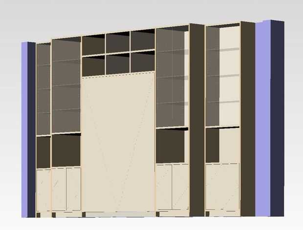 Esto es donde me sale a presumir. Un cliente quiso añadir una cama Murphy (la clase que se doblan abajo de la pared), pero todavía necesita mucho de espacio de exhibición. Pude modelar esto en un día (tiempo) sólo por la versatilidad de la modelación paramétrica Alibre diseños.