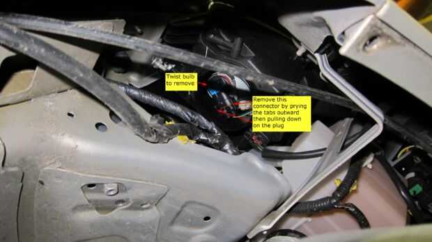 Alcance y retire el bulbo de goma cubierta en la parte posterior de la carcasa del faro. Es cerca de tres pulgadas de diámetro y hecho de fina, plana de caucho con lados cortos (se ve algo así como una placa de Petri). Retire el conector de la bombilla del faro delantero, luego gire la bombilla hacia la izquierda para quitarlo. Asegúrese de que quitar el enchufe de la bombilla antes de quitar la bombilla. Esto hace más fácil conseguir el enchufe de la bombilla.
