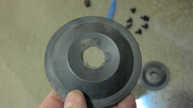 Utilizando la toma de 3/4, martillo y superficie dura, crear un agujero en la goma de la cubierta cubierta.  Para ello, colocar la tapa en concreto u otra superficie de terreno duro con la parte posterior de la misma en contacto con el suelo.  La posición la toma con el lado hexagonal hacia abajo y el lado para arriba en el centro de la cubierta de goma.  La toma para hacerla perforar a través de la goma y en contacto con el suelo un golpe con el martillo.  Esto hará que un agujero bastante limpio.  Usted necesitará golpear bastante duro.