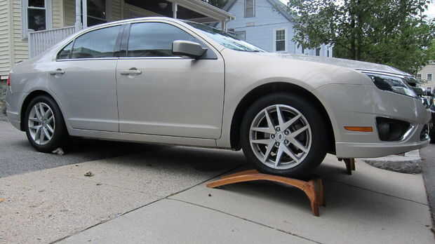 Sin embargo es necesario levantar el coche debe ser determinada por usted, pero lo hice con algunas rampas del coche.  Necesitaba ponerlas al final de mi camino, por lo que encajaría en el parachoques delantero.  Puede conducir el coche al borde de una acera que es bastante alto y encontrar algún espacio de esa manera, pero yo diría en todos los casos que usted tiene que tener este espacio para hacer el trabajo.  Una vez que su coche está en posición de aplicar el freno de emergencia y calce las ruedas.