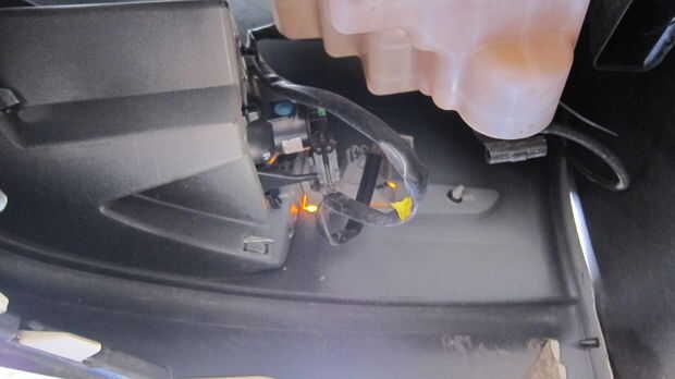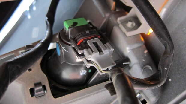 Una vez que tienes el panel de acceso de en medio vas a tener una visión clara de la luz de niebla.  Levante las lengüetas del enchufe hacia afuera y luego tire hacia abajo el enchufe de la bombilla.  A continuación, gire la bombilla hacia la izquierda y retírela.